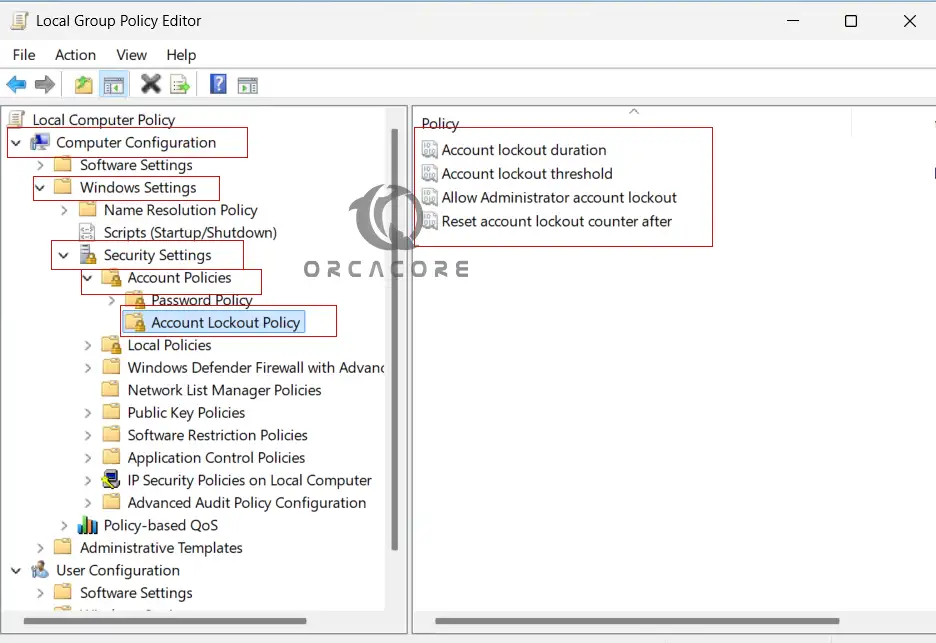 You can now proceed to the guide steps below on the Orcacore website to see how you can configure Account Lockout Policy (threshold, duration, and counter after) on Windows Client and Windows Server.