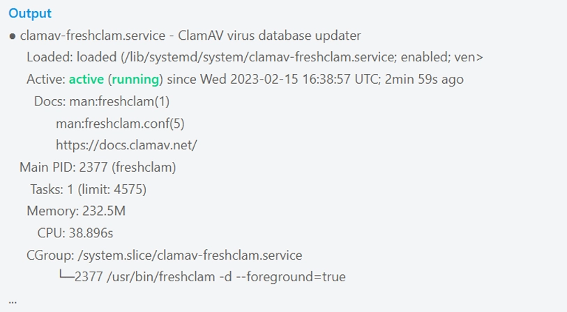 Note: If the service is not started, run the following command to start clamav-freshclam: